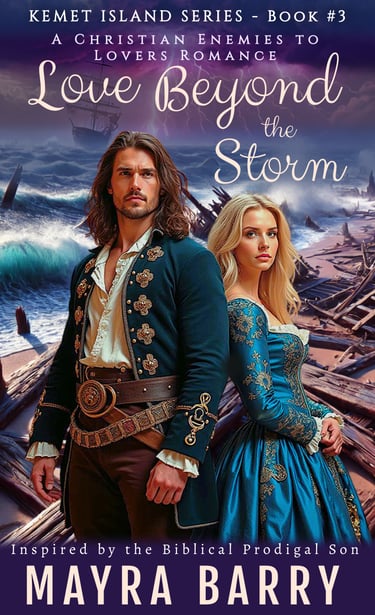 Recent book is about a rogue pirate and a banker's daughter (Love Beyond the Storm).